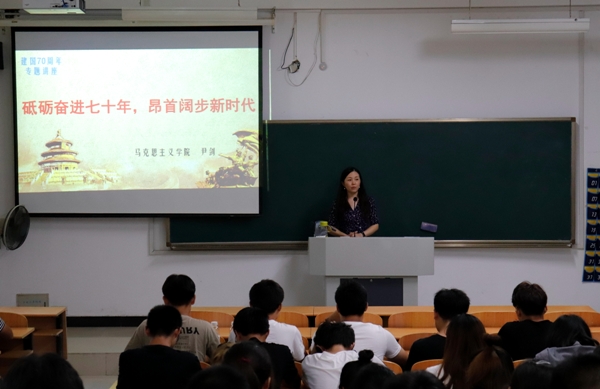 为庆祝中华人民共和国成立70周年,材料工程学院于2019年9月18日下午在3203教室承办了“砥砺前行,跨越发展”专题讲座。本次讲座特邀马克思主义学院尹剑老师主讲,材料工程学院100余名同学参加。