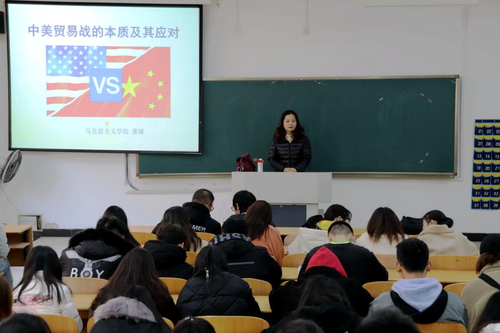 为了让同学们更深入了解国际形势,加强忧患意识,由马克思主义学院副教授董娜主讲的“中美贸易战的本质及其应对”主题讲座于12月5日15:20在4203教室成功举办。本次讲座由材料工程学院承办,各年级学生代表参加。