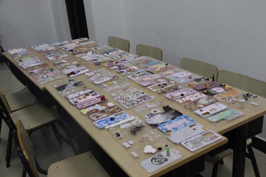 活动伊始,主持人介绍本次活动的规则赛制,参赛选手们利用现场提供的或自带的材料,在空白手机壳上进行创作,最终由评委选出前六名。灵感的火花不断碰撞,创作的热情持续高涨,材料学子充分发挥想象力与创造力,作品各具风格,充分展现了各自的特色。比赛现场气氛热烈沸腾,同学们沉浸其中。经过投票,最终蒋梦玲获得一等奖,胡田甜,仝妤婕获得二等奖,郑晓玉,卢茜倩,石尚获得三等奖。