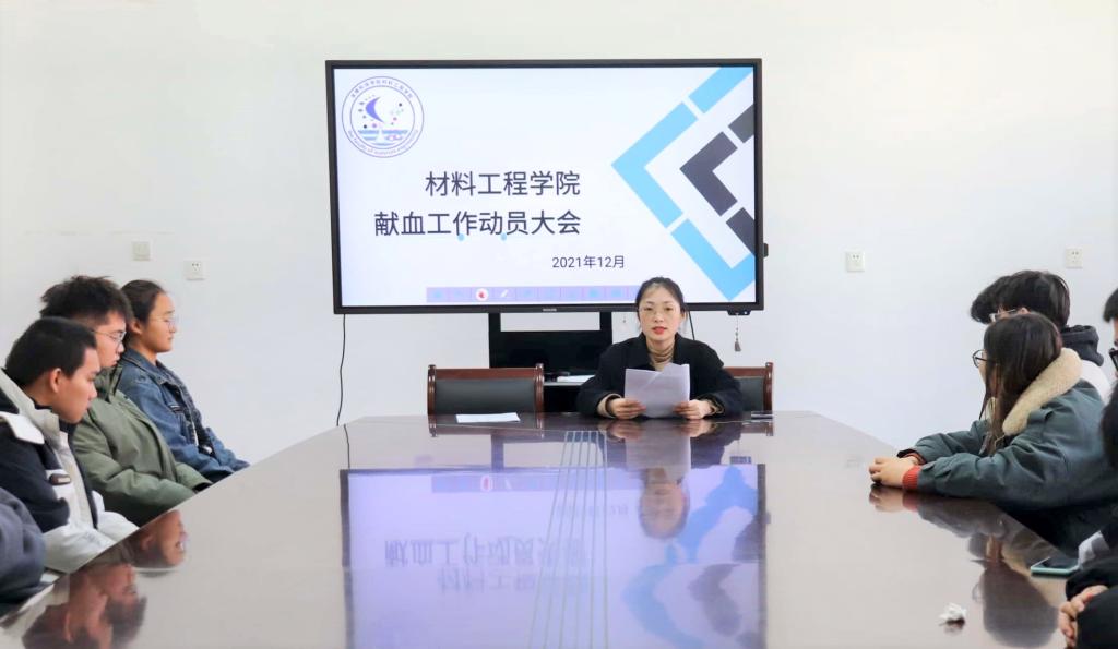 无偿献血是每个公民应尽的一种社会义务,也是实行救死扶伤,助人为乐的具体表现。为鼓励号召大家积极参与无偿献血,材料工程学院于12月13日在学院会议室召开了献血工作前期布置会,14日成功组织同学们参与无偿献血活动,我院的同学们积极报名,踊跃参加。材料工程学院党委副书记陈智慧、辅导员华岚芳,全体无偿献血的同学及志愿者参与布置会。