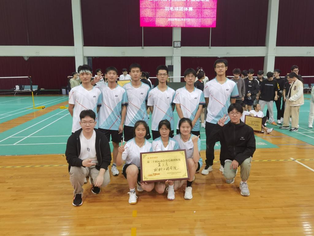 11月27日,金陵科技学院第二十届羽毛球团体赛顺利举行,经过激烈的角逐,我院由吴金隆、张仙松、孟庆宇等同学组成的团队在此次大赛中拼搏进取,奋勇争先,成功斩获团体第三名。