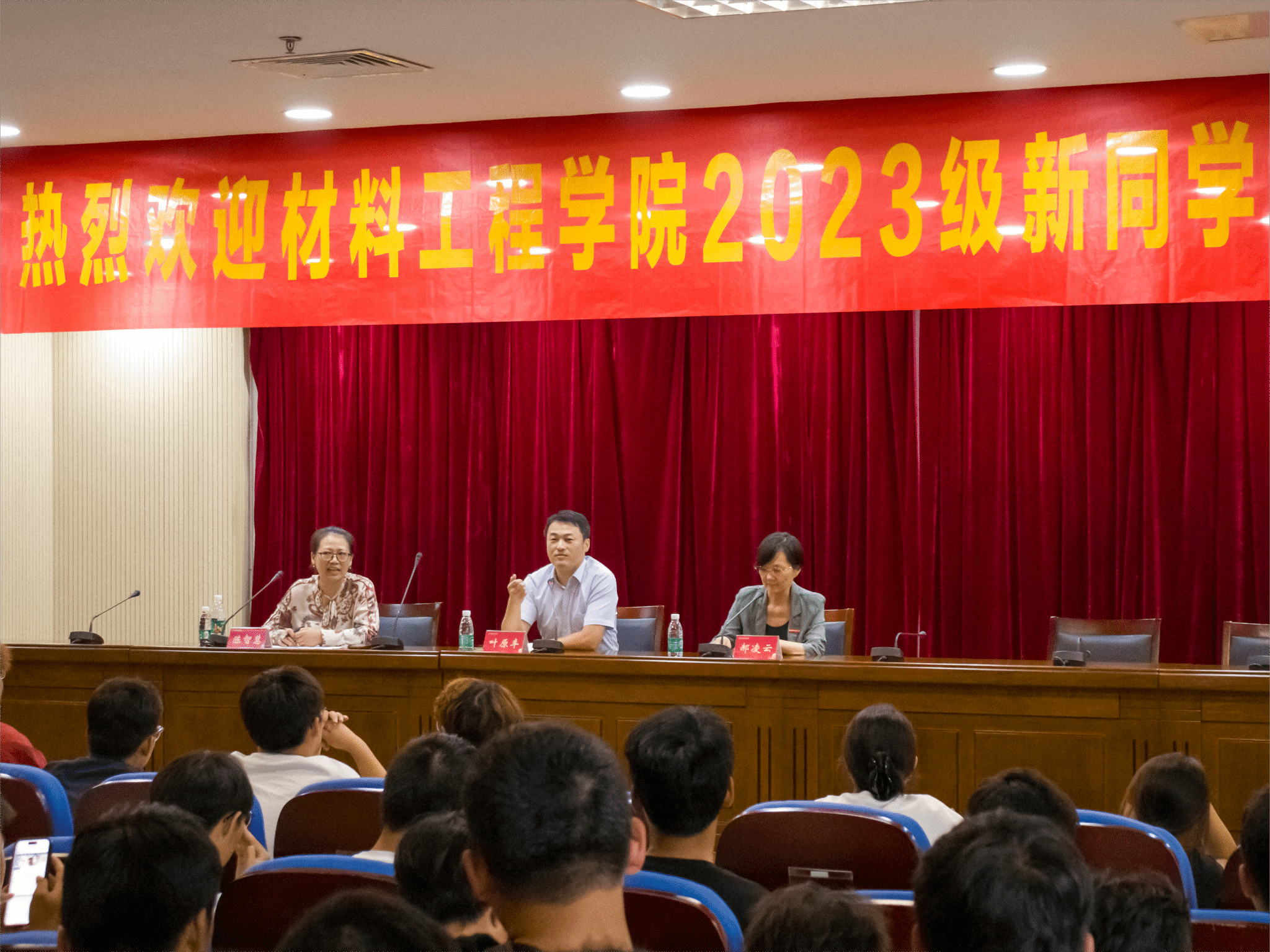 新生入学教育是大学生入校的第一课,影响深远、意义重大。活动伊始,郝凌云院长代表学院对新生的到来表示热烈祝贺和欢迎。叶原丰书记以自身经历为引,从“辨是非、晓善恶、知对错”三个方面勉励同学们把握时代主流,筑牢理想信念,在金科成长为新时代好青年。陈智慧副书记对加入材料学院大家庭的新生们寄予殷切的希望,期待他们在遵守校规校纪的前提下尽情绽放属于自己的大学光彩。