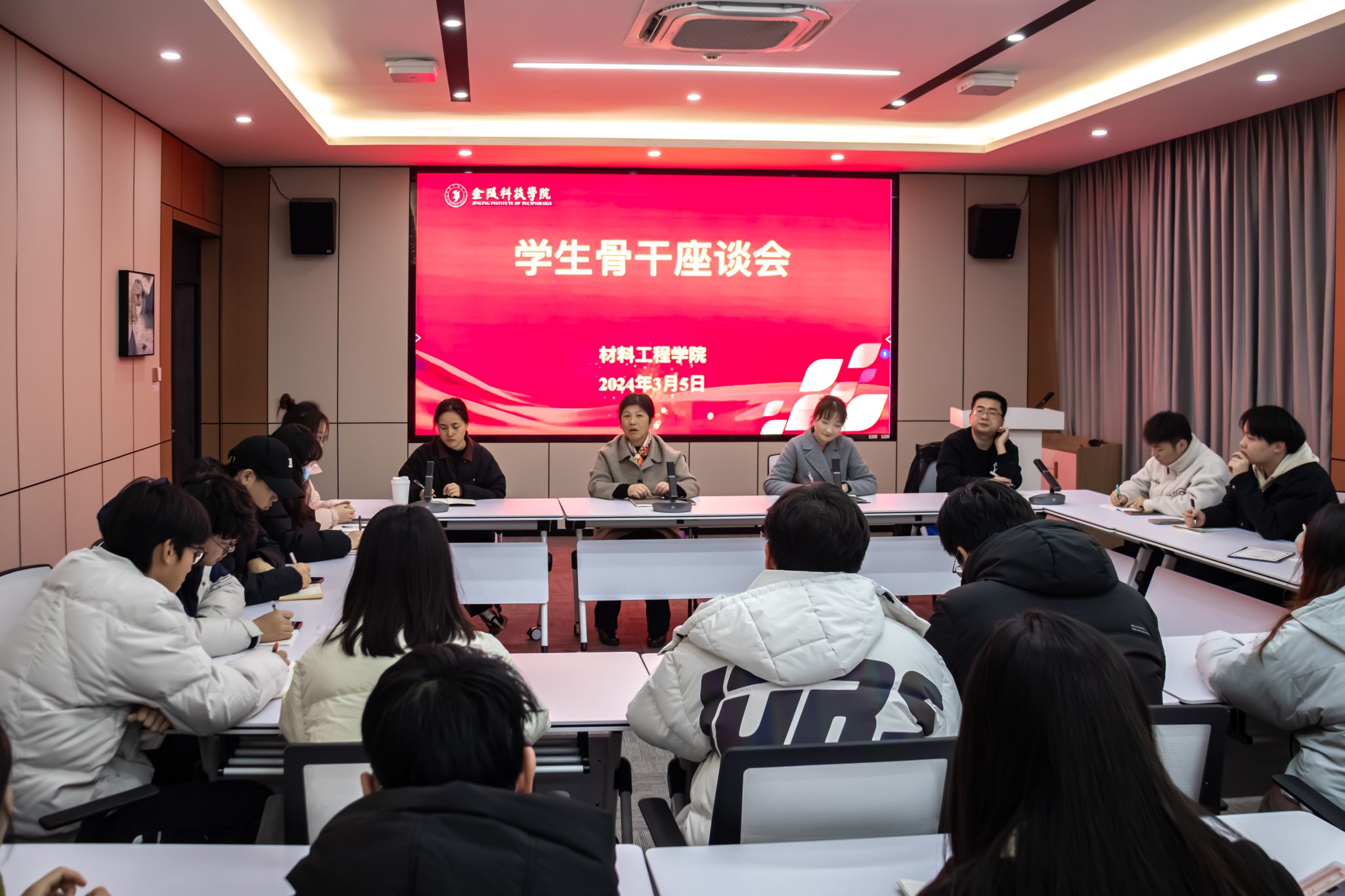 材料工程学院于3月5日中午在知行楼A506会议室召开学生骨干座谈会,材料工程学院党委书记陈健、党委副书记韩铖、辅导员许倩颖、邵云龙和华岚芳以及全体学生会成员参加会议。