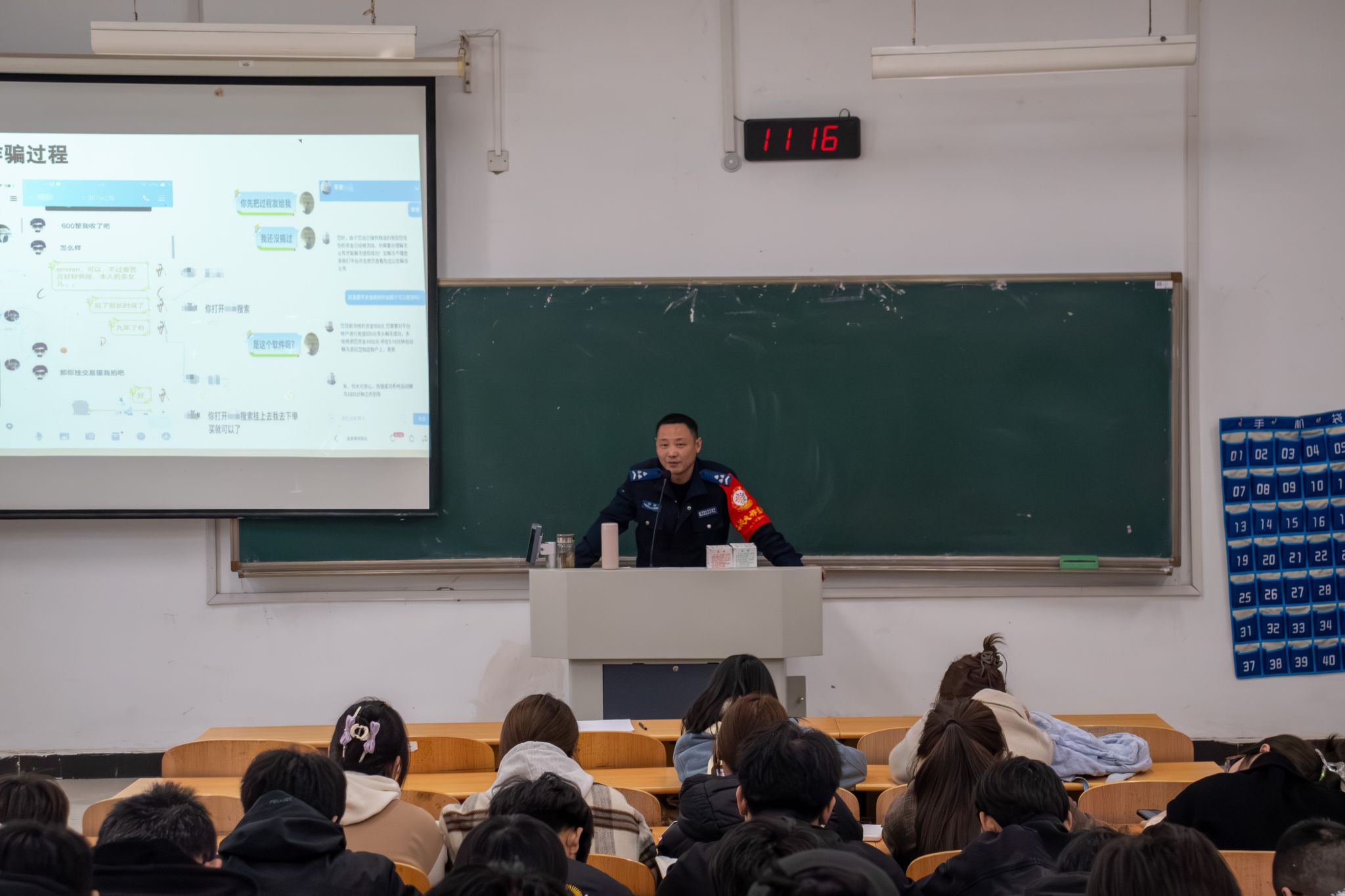 讲座伊始,张警官强调:“电信诈骗中‘引流’往往作为电信网络诈骗的‘前菜’,对一个骗局的成功起到决定性作用。”接着,张警官列举了刷单类诈骗、冒充类诈骗、购物类诈骗等常见诈骗案例的“引流”方式,细致分析了各大类电信网络诈骗的过程及其本质,深入浅出地讲解了不法分子的惯用伎俩和手段。张警官还结合当前诈骗案的特点,提出了针对性防范措施,叮嘱大家牢记八字口诀:要钱不给、给钱不要,寄语同学们在日常生活中要提高安全防范意识,不贪小利、遇骗不惊。活动现场气氛热烈,同学们纷纷表示会将反诈知识应用到生活中,警惕电信诈骗,保护好财产安全。