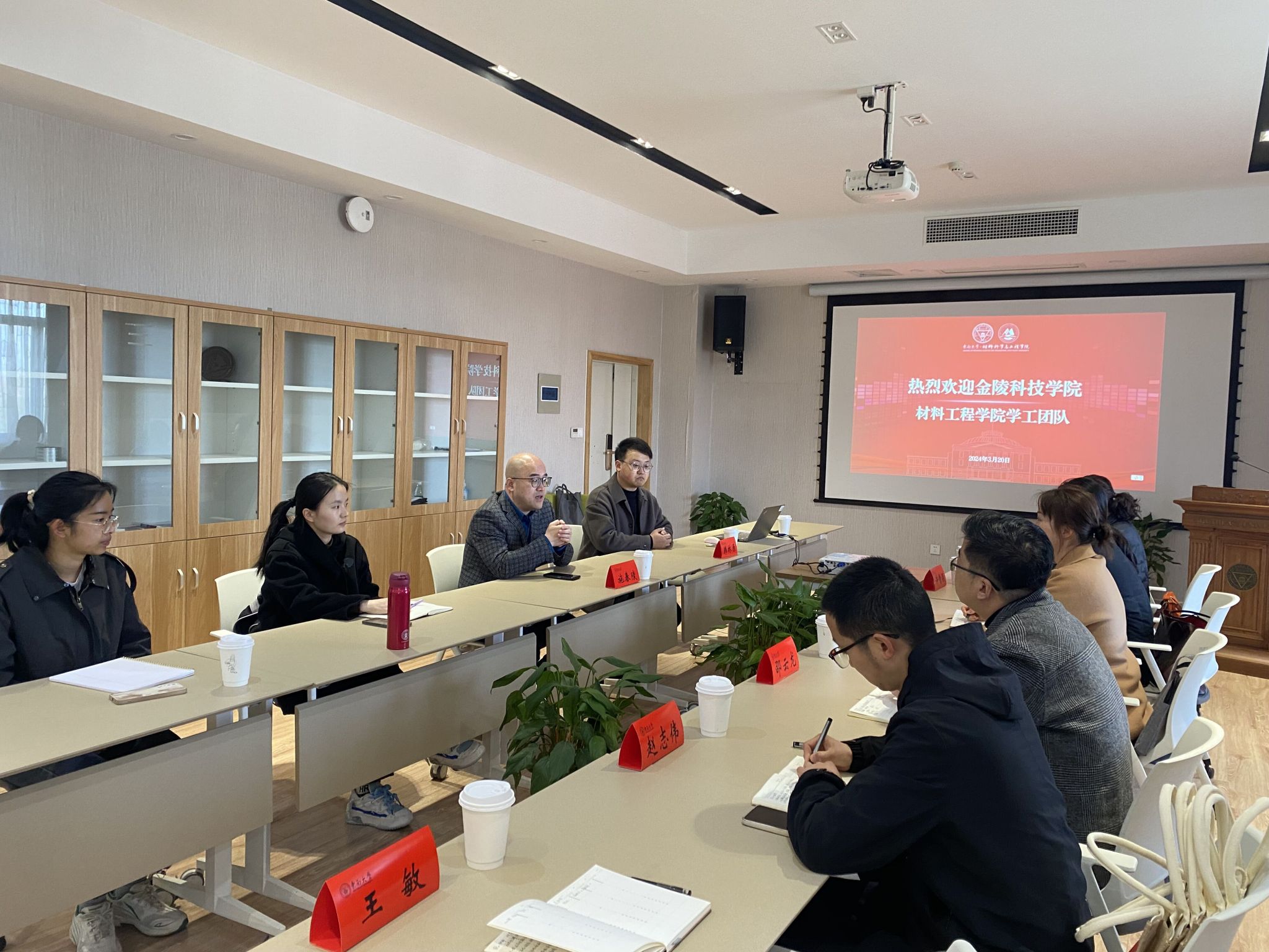为进一步落实立德树人根本任务,推动学院学生工作的系统化、科学化,3月20日上午,材料工程学院党委副书记韩铖、学工办主任许倩颖、团总支书记邵云龙及全体辅导员,赴东南大学材料科学与工程学院开展学生工作交流研讨。东南大学材料科学与工程学院党委副书记兼副院长施春陵、学办主任兼分团委书记韩林原、院兼职辅导员徐邦利和学办助管等出席交流会,会议由韩林原主持。