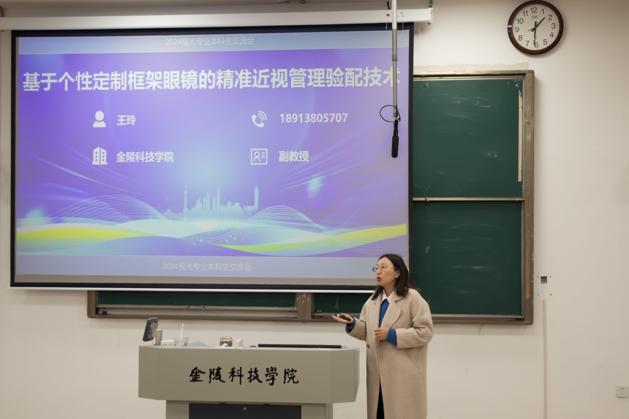 在本次交流会上,王玲教授主要以个性定制眼镜为切口,从近视管理、个性定制框架和镜片的必要性及应用等多个方面展开讲解,并且对基于个性定制框架眼镜的精准近视管理验配技术的发展前景做出热切展望。在互动环节,同学们积极踊跃地提问,王教授耐心地为同学们解惑答疑,分享视光行业最新的动态和趋势,为同学们提供宝贵的学术指导和职业建议。