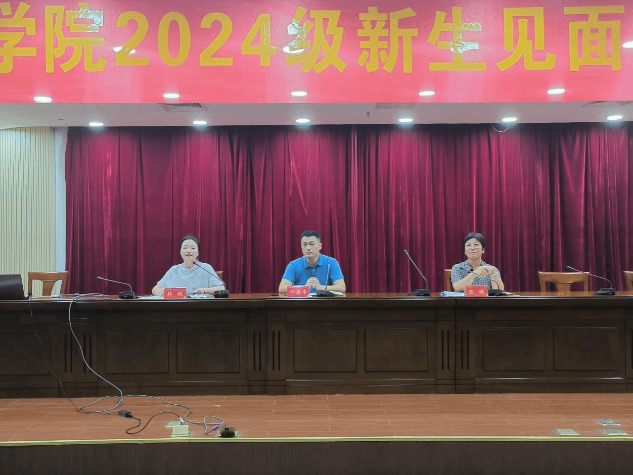 叶原丰首先代表学院对新同学的到来表示热烈的欢迎,并深情回顾了自己的求学生涯,结合自身的成长和从教经历,对学生们的成长发展提出了希望和要求,他指出同学们要尽快适应新阶段的学习和生活,完成角色的转换;立足专业特点,狠下工夫钻研,练就过硬本领;同时要确定新的奋斗目标,做好人生规划和职业规划。随后,韩铖针对学生教育管理和大学生活等方面进行了交流,希望同学们遵守法律法规和校规校纪,做一名合格的大学生;同时勉励同学们珍惜大学时光,寻找到适合于自己的大学生活方式,培养在学习和生活上独立思考的能力,成为一个自由独立的人。陈健作会议总结,她向新生提出了殷切希望,希望同学们坚定理想信念,坚持爱党爱国爱校;要积极努力充实自己,收获学业和成长;同时提醒新生们好好照顾自己,注意人身和财产安全。
