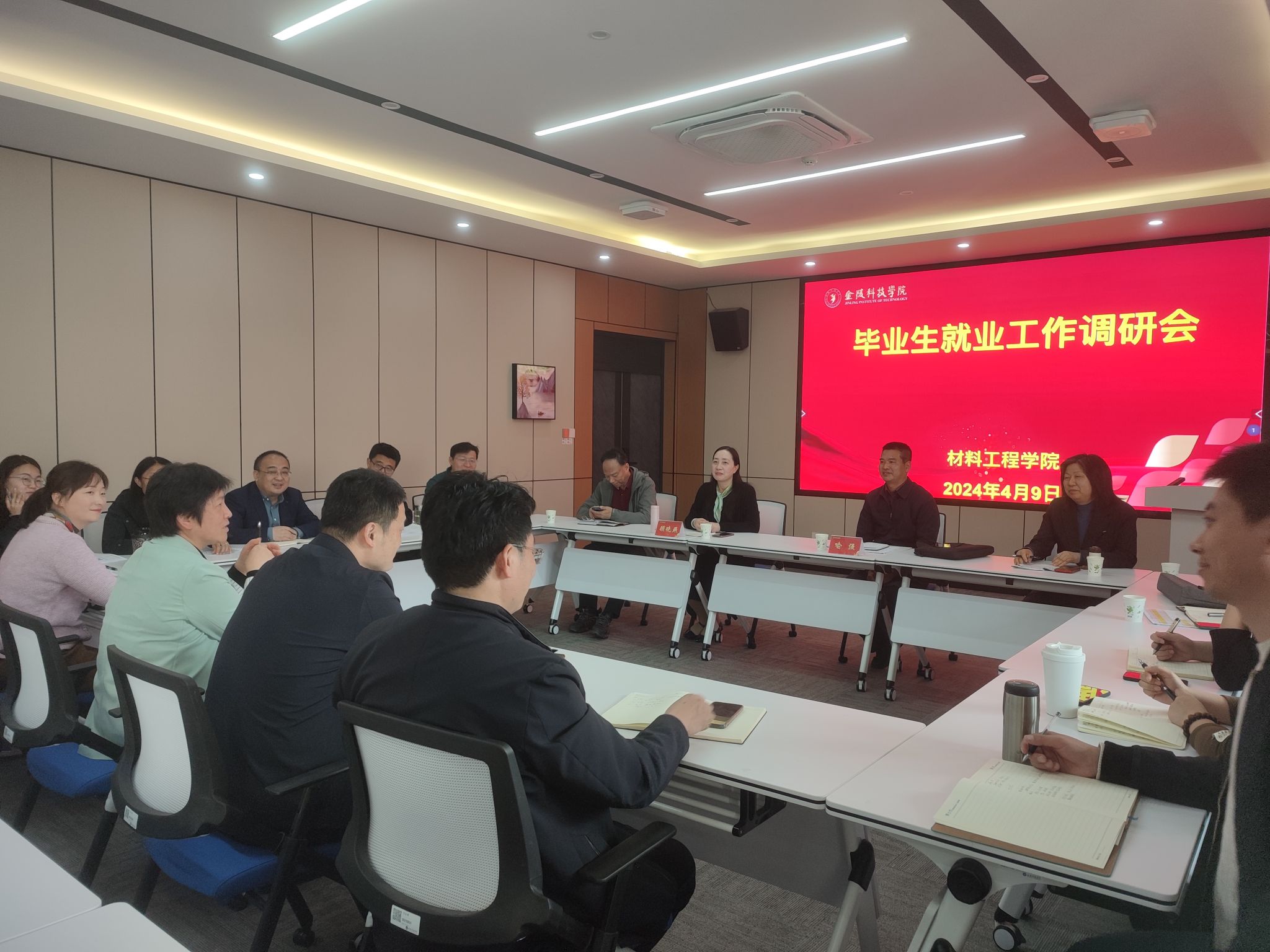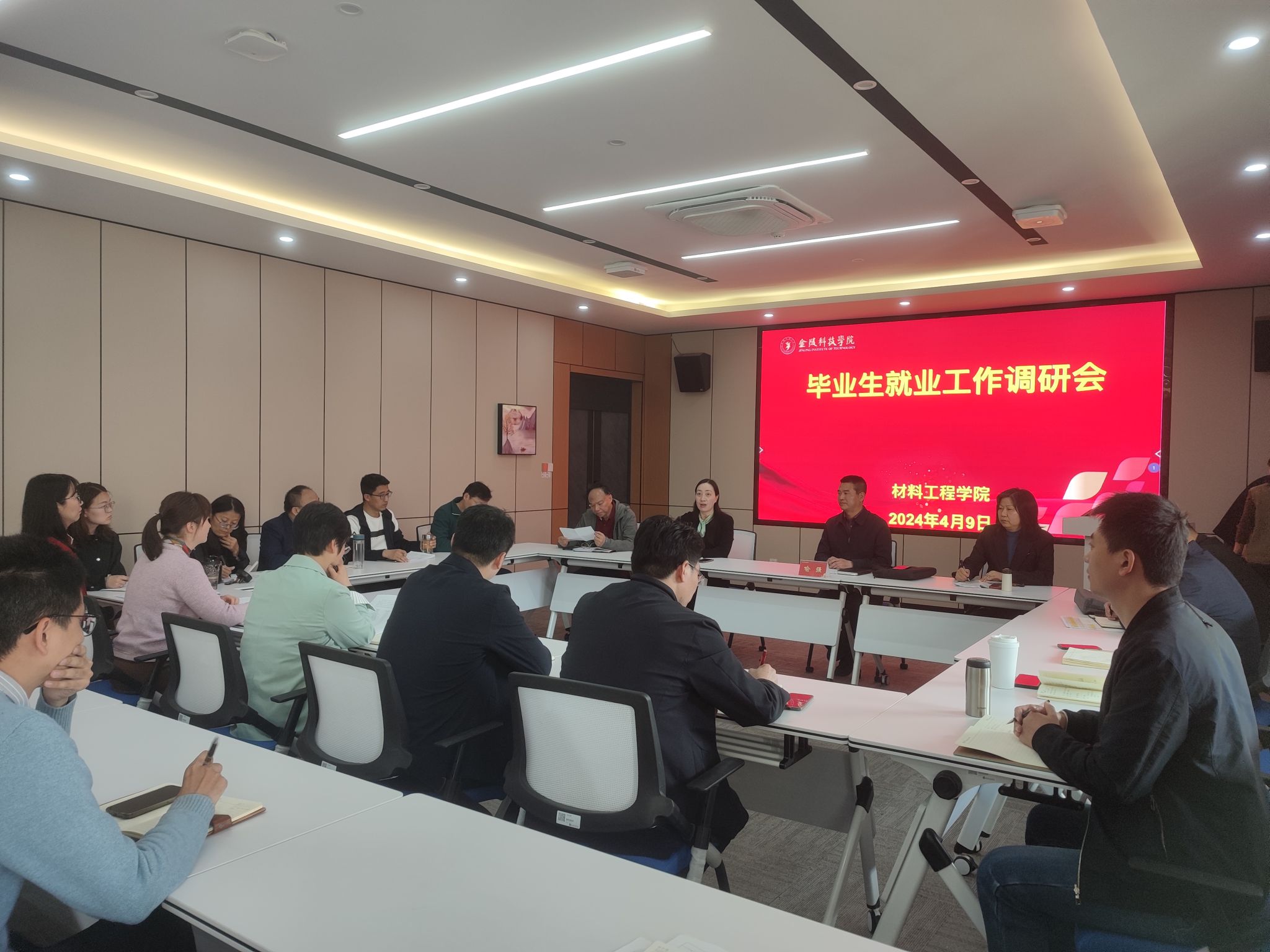 调研会上,招生与就业指导处处长喻强传达了《金陵科技学院2024届毕业生就业工作推进方案》主要精神,学院党委书记陈健表示学院就业推进一直是我院重点强抓的工作之一。