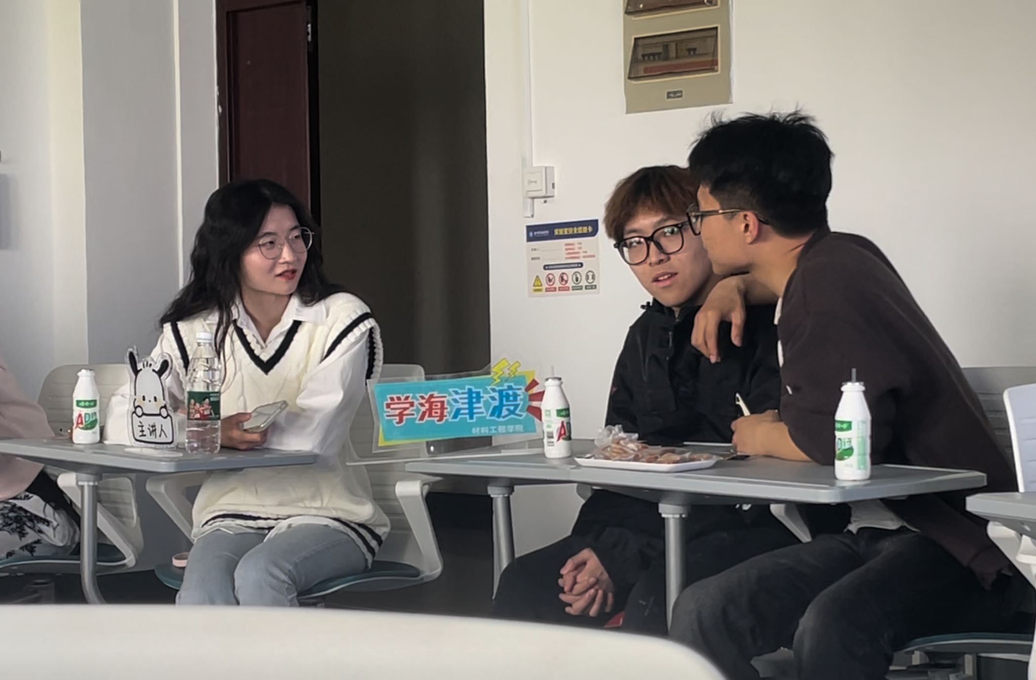 本次活动邀请到三位硕士研究生拟录取的学长学姐作为主讲人,为同学们分享经验和答疑解惑。活动伊始,三位主讲人分别分享自己的考研经验和建议,主要包括院校选择、备考时间安排、复试经验总结、缓解压力方法等。现场还为大家准备了饮品、零食等,提供了舒适的交流答疑环境,同学们提问热情高涨,围绕“考研前怎么做题最高效”、“考场遇到突发问题怎么办”、“复试是否有本科院校层次要求”等问题进行深入热烈的讨论。大家纷纷表示收获颇丰,解答了自己的考研困惑,消解了考研迷茫。