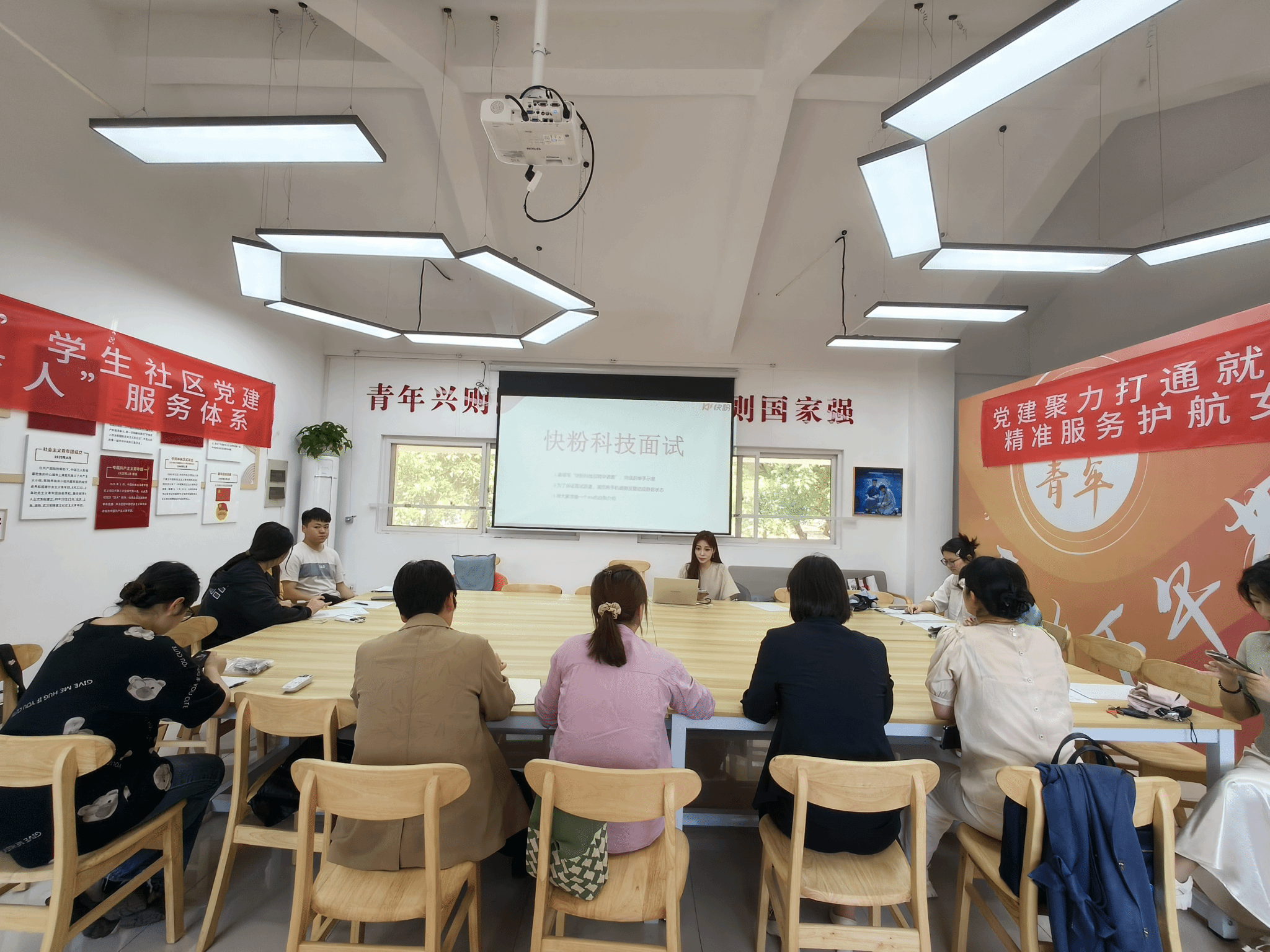 5月12日下午,快粉(江苏)科技有限公司于南区 08 栋学生一站式社区举办小型校园招聘会。材料工程学院党委书记陈健、副书记韩铖、复材系支部书记王昆彦、系主任庞娟等亲临现场指导,为深化一站式学生社区党建、构建 “三全育人”服务体系注入实践动能,也为女大学生就业搭建精准服务平台。