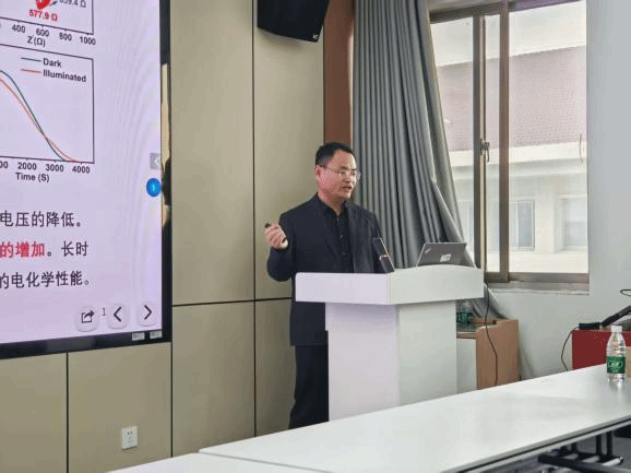 李敬发教授还以“集成式光(辅助)充电新能源存储器件设计及性能研究”为题开讲。他聚焦锂/钠离子电池、锌离子电池及光辅助储能技术,结合在《Advanced Energy Materials》等国际顶级期刊发表的50余篇SCI论文(总引用超5000次),详解“集成式光辅助充电”技术在提升能源存储效率、优化器件设计中的创新路径。作为国家自然科学基金等10余项科研项目主持人,其研究成果获山东省自然科学二等奖等多项荣誉,为师生科研攻关提供了宝贵方法论。