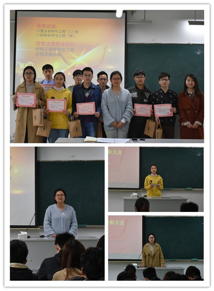 本着“我参与,我奉献,我快乐”的原则,材料工程学院志愿服务分队开展了系列志愿服务活动。2018年4月4日中午,材料工程学院在1204教室举办志愿服务总结暨表彰大会,辅导员江赛德老师出席此次会议。