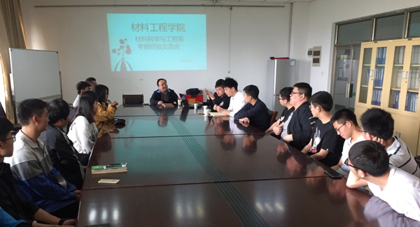 材料工程学院材料专业为了让本专业的学生了解最新的考研详细情况鼓励大家为考研做好准备,分别于2018年4月11日、4月18日下午,在材料院工科楼会议室A504开展考研经验交流会。交流会由17专转本、15材料单招班的同学参加,材料系系主任林青、王威老师出席本次会议。