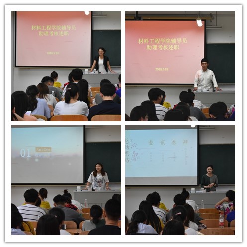 为交流经验,总结并分享辅导员助理在一年中的工作,5月18日中午12:00,材料工程学院17级辅导员助理述职大会在1202教室召开。材料工程学院党总支副书记陈智慧、学工办主任邱勤和各年级辅导员出席本次会议。