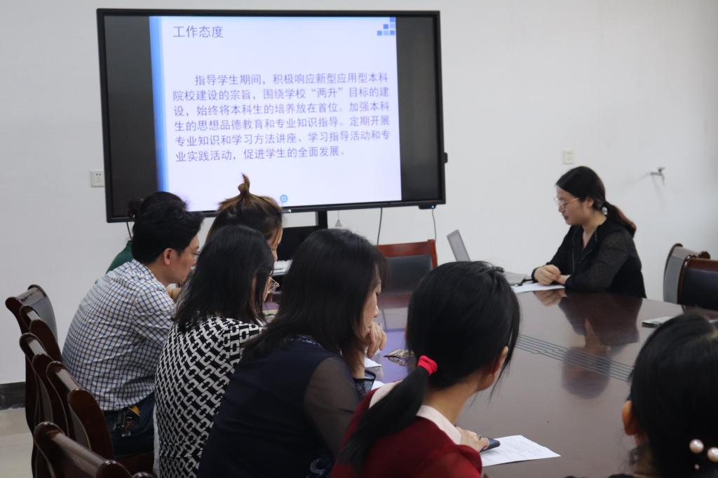 会议伊始,许倩颖老师介绍本次会议的目的及流程,强调评审需秉持公平公正公开的原则,按照学校的评分标准进行评分。随后,十位本科生导师按照科技导师、学业导师、创业导师的导师分类,依次进行工作汇报,分别从工作态度、专题讲座、学业指导、学科竞赛、指导学生申报专利或发表论文的成果等方面向我们进行了教学工作成果展示,并欢迎大家对自己的工作提出建议和意见。老师们的介绍让大家了解到了日常工作情况与付出,也展示了材料学子所取得的学业和创业成果。