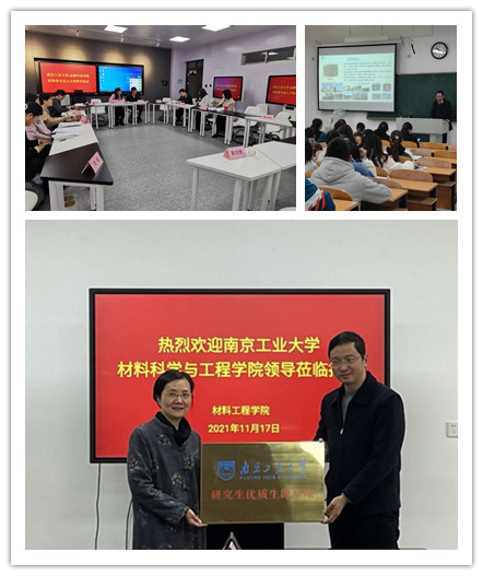 会议伊始,叶原丰致欢迎词,他感谢南京工业大学材料科学与工程学院对我校生源的培养和关心,郝凌云和陆春华相互介绍了学院办学概况。会上,双方共同为“研究生优质生源基地”挂牌。