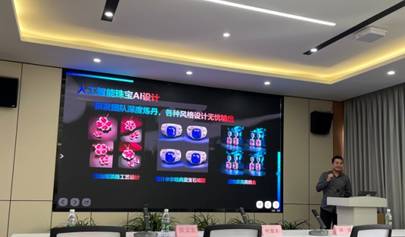 仪式结束,蒋止涯董事长就“珠宝首饰AI设计与培育宝石生产工艺”为主题,为在场的师生带来了一场精彩的分享。他深入浅出地介绍了珠宝首饰设计的最新趋势和宝石生产工艺的创新发展,让师生们对珠宝行业的前景充满期待。