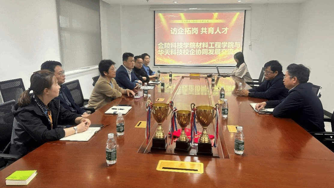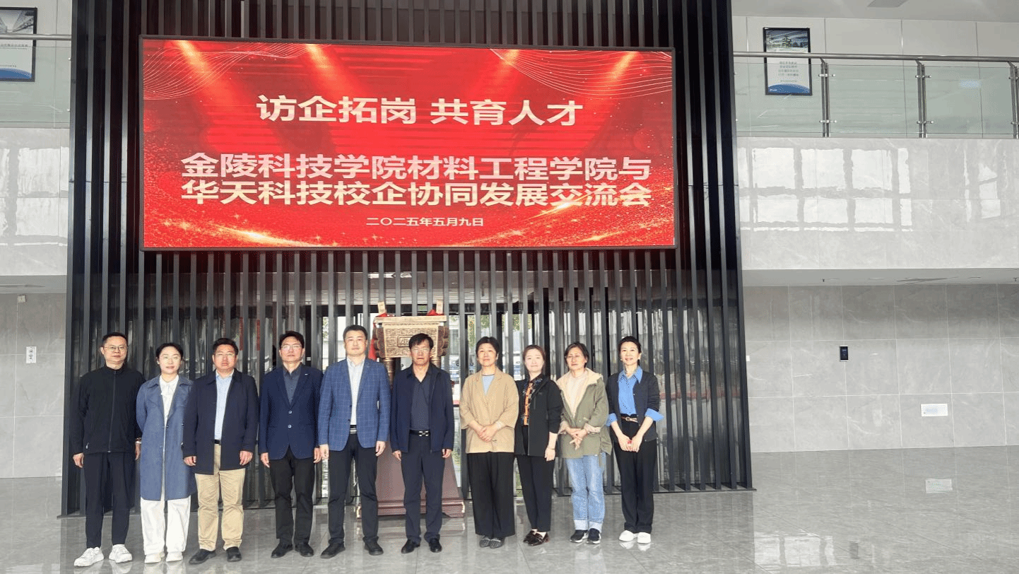 2025年5月9日,金陵科技学院材料工程学院院长叶原丰、党委书记陈健、副院长管航敏、党委副书记韩铖,率复合材料与工程系党支部书记王昆彦、教师代表杨晓莉等一行,赴华天科技(南京)有限公司开展“访企拓岗,共育人才”校企协同发展交流活动,旨在拓宽毕业生就业路径,深化产学研合作,共探材料领域人才培养新模式。