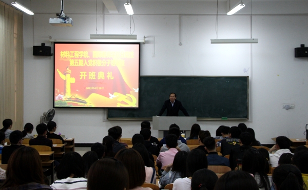 为增强学生入党积极分子的党性意识,深化党的基本理论、基本路线和基本纲领的教育,2018年4月18日晚上6:00,材料工程学院在4105教室举行了2018年入党积极分子培训班开班典礼。党总支书记陆秋林、辅导员许倩颖出席此次典礼。