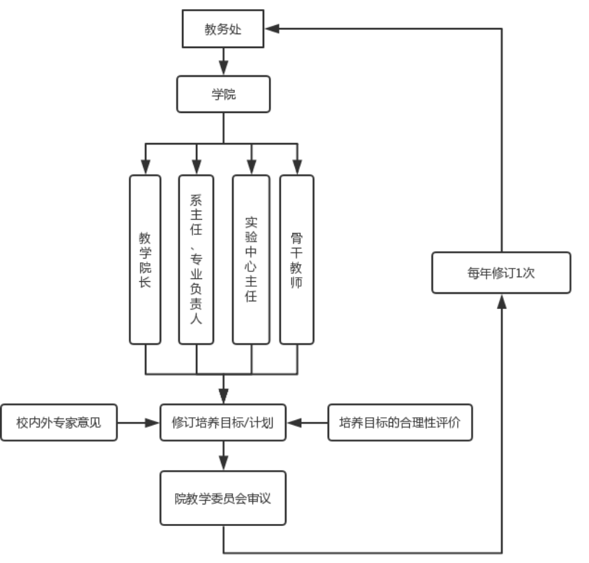 为了更好地适应经济建设、社会发展和科技进步的需要,本专业培养目标及培养计划每年进行一次修订,根据文件规定严格按程序进行,具体工作流程如下: